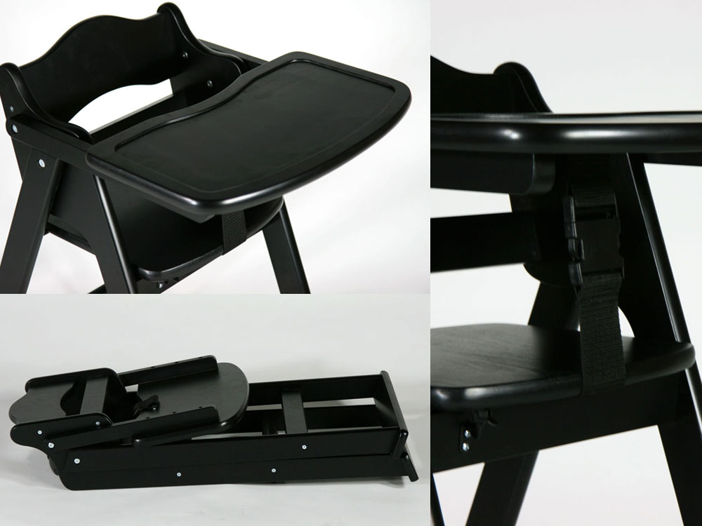 ■新品■折りたたみ ベビーチェア テーブル付き トレイ付き キッズチェア 木製 子供用椅子■ブラック■ ●○折りたたみ式・ベビーchair●○ ●赤ちゃんや幼少のお子様に、ぜひ使って頂きたい商品の一つが、この折りたたみ式・ベビーチェアです。